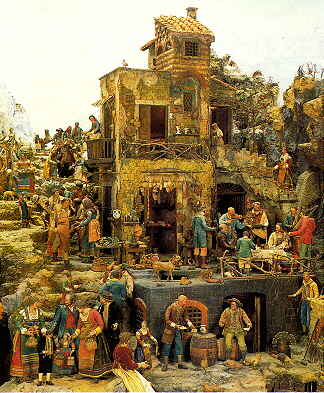 Naples became famous in the XVIIIth century for the development of very elaborate cribs using wood, cloth, terracotta and porcelain and introducing mechanisms to move figures around. Giotto: presepio di Greggio |