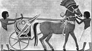 Storicamente le prime notizie ci provengono da fonti egizie. Esse ci narrano dell'uso che ne fecero popoli semiti definiti con il termine generale di Hyksos contro gli Egizi stessi. Infatti proprio con l'uso dei carri da guerra gi Hyksos travolsero le difese egiziane e nel XIX secolo a C. dominarono l'Egitto stesso. Furono poi cacciati dagli Egizi nel XVII secolo a C. che nel frattempo si erano impadroniti dell'arte dell'uso del carro.