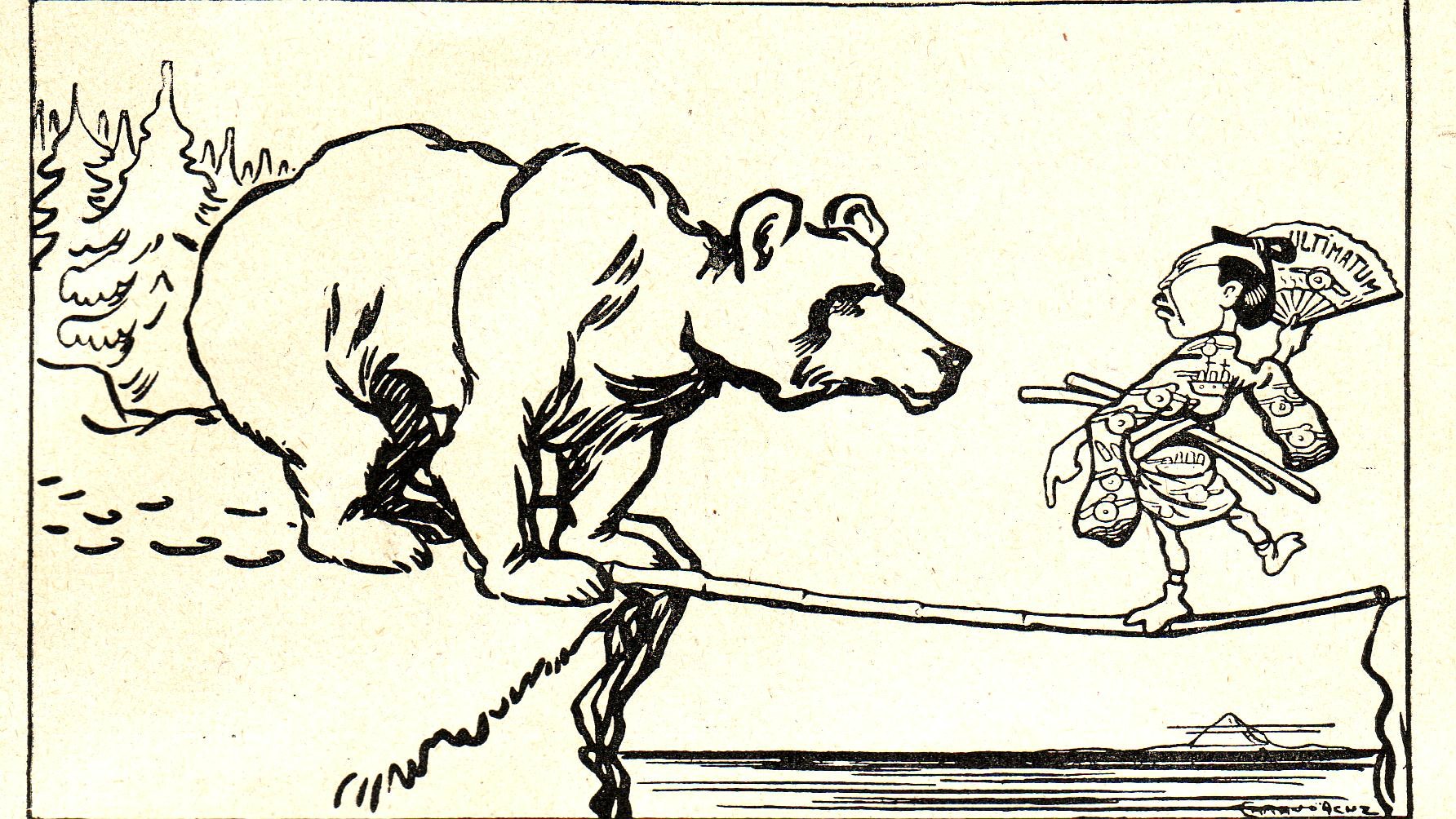 Caricatura del Figaro : i Giapponesi sfidano l'orso russo