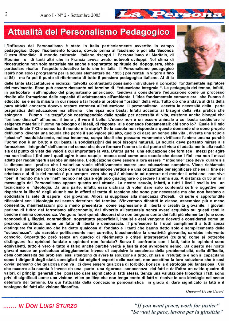 PUBBLICATO in LA PERSONA ,settembre 2005 anno I n 2 ,