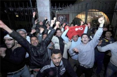 La folla festeggia a Tunisi ( foto al Jazeera)