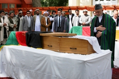 Nella foto da al jazeera: Hamid Karzai ai funerali del fratello
