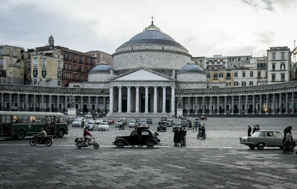 Notevoli le ricostruzioni dei luoghi, come Piazza del Plebiscito percorsa dalle auto di allora: le modeste 600 e le 1100, roba da ricchi. E quindi gli abiti e le toilette, gli uomini con il cappello, le ragazze dalle gonne ampie e lunghe. E le prime vacanze modeste ed economiche in case affittate a Ischia, con gli ombrelloni portati da casa.