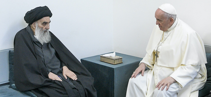 Il punto più importante del viaggio può considerarsi l’incontro con al Sistani il novantenne capo religioso degli sciiti iracheni