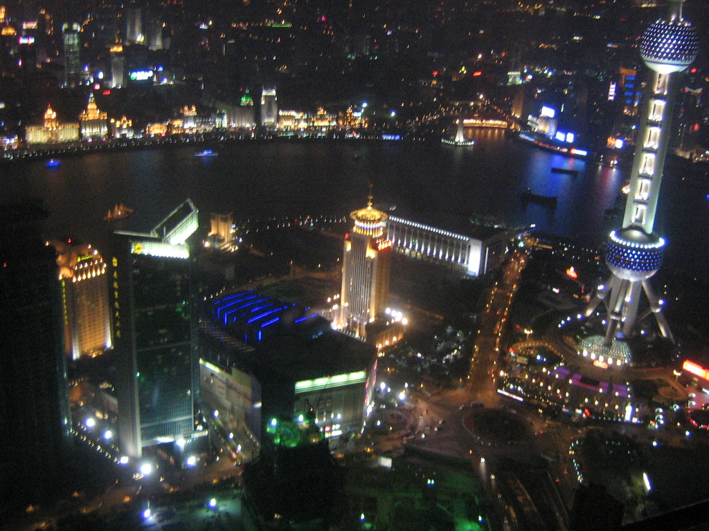 Una veduta di Shanghai di notte dalla cima del suo grattacielo più alto: in questa zona fino a qualche anno fa non c'erano che pochi campi con qualche casupola di contadini . .