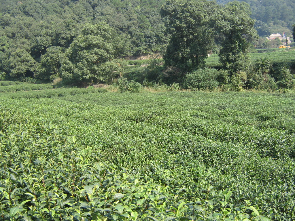 Un grande campo di the nei pressi di Hangzhou che ne produce una qualità particolarmente pregiata . .