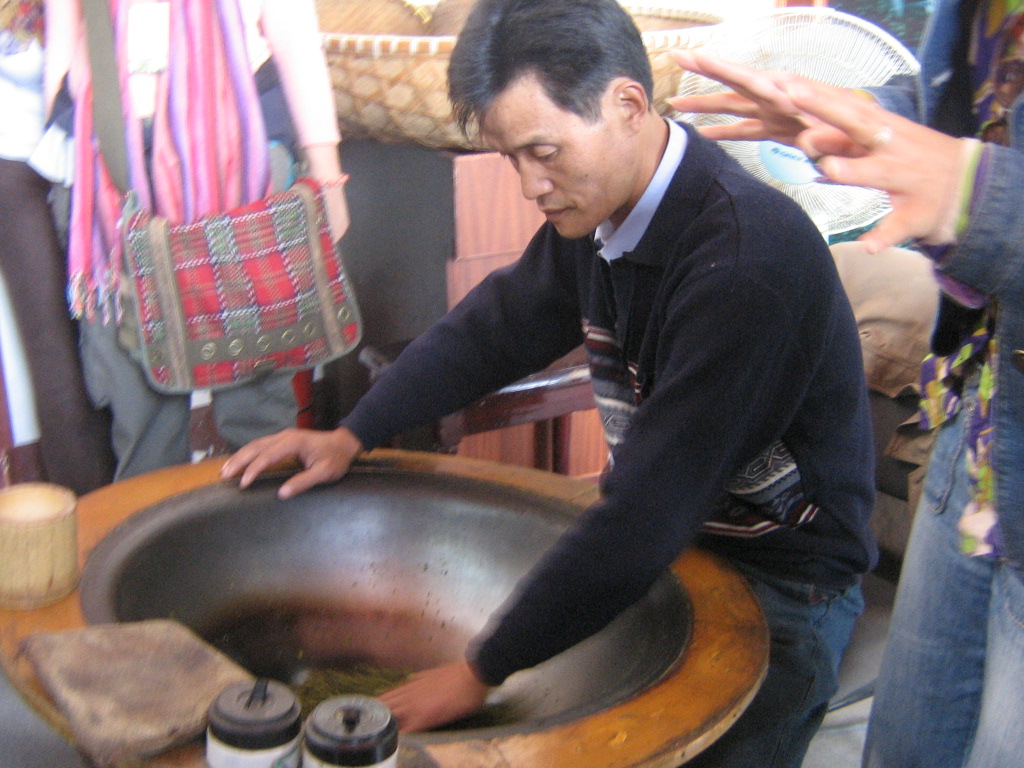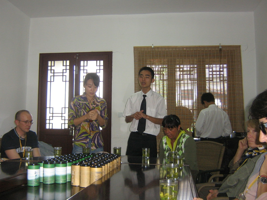 Cinesi esperti nel settore spiegano ai turisti attenti e un pò attoniti le virtù del the e il modo migliore di usarlo
