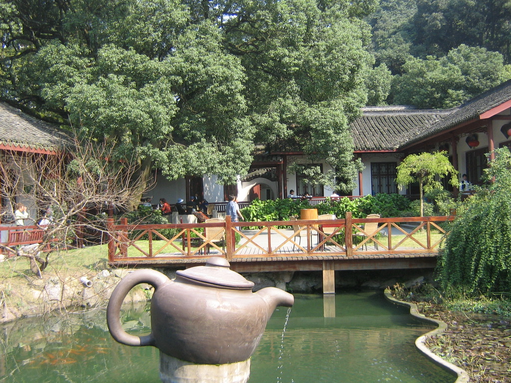 Una casa da the : naturalmente la fontana è stata fatta a forma di teiera.