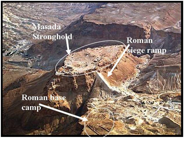 In questa fortezza, in un momento imprecisato, si rifugiarono un gruppo di Giudei irriducibili, definiti genericamente Zeloti (cioe "pieni di zelo religioso" , noi diremmo: fondamentalisti ) con le rispettive famiglie, in tutto poco piu di un migliaio di persone guidati da un capo deciso e intrepido di nome Eleazar Ben Yair. Contro questa fortezza mosse un esercito romano di circa 7.000 uomini guidato da Flavio Silva