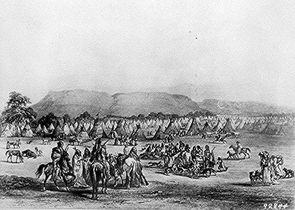 Tranne che alcune tribu come i Pluebo che avevano avuto presumibilmente contatti con le civiltà indigene del Messico gli indiani non conoscevano residenze stabili. Vivevano in tende formate da pali ricoperti con pelle di bisonte : si spostavano facilmente trascinando tutto il materiale su slitte tirati dai cavalli