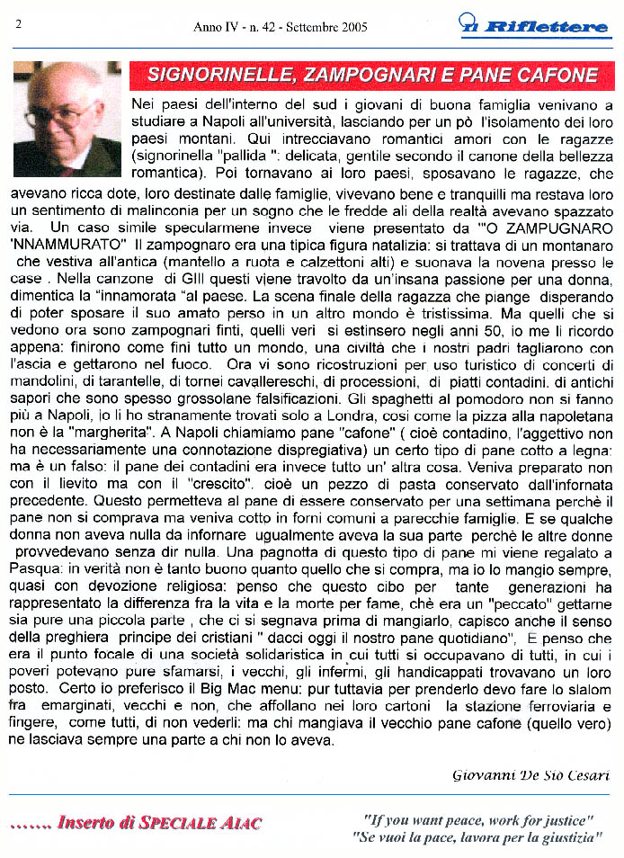 PUBBLICATO a stampa su IL RIFLETTERE settembre 2005