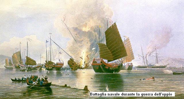 Gli Inglesi, per controbilanciare la importazione di the, iniziarono a vendere oppio inCina. Ovviamente le autorità cinesi si opposero: allora gli inglesi aggredirono la Cina e vinsero facilmente la guerra costringendola a permettere la libera importazione dell’oppio. L’oppio si diffuse come una peste in tutto l’impero con un effetto devastante su tutto il tessuto civile e familiare della nazione: pochi fatti nella storia sono stati altrettanto ingiusti e infamanti.
