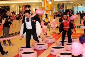con ostacoli tenutasi a Hong Kong fra i mariti che trasportano le