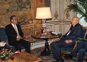 pomeriggio Wu Bangguo, ha incontrato il Presidente Napolitano per