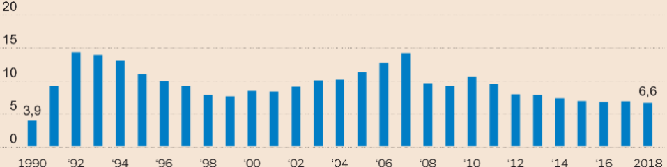 I tassi a due cifre dei primi anni del secolo sono ormai un ricordo da molto tempo e non possono essere ricondotti solo alla politica commerciale di Trump. E’ d’altra parte del tutto ovvio che tassi molto alti non possono durare troppo cosi come è avvenuto nel nostro miracolo economico e in tutti i paesi che hanno avuto simili fenomeni. Vanno poi esaminati anche nella loro composizione : comunque la Cina ha ancora un tasso di crescita ignoto in Occidente e soprattutto aumentano i consumi e i servizi. Il tasso di disoccupazione rimane intorno al 5% nelle aree industrializzate (si noti che nella Cina ancora agricola e arretrata non viene calcolato) L’economia quindi appare stabile e forte e non desta preoccupazioni