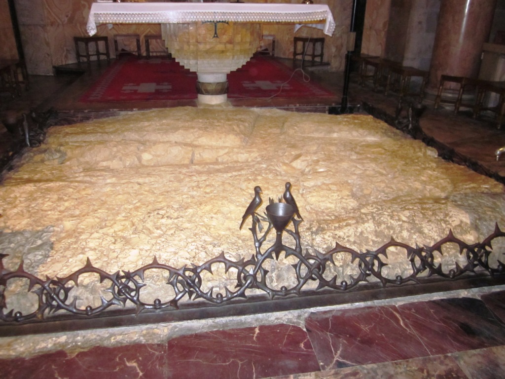 che è costruita su una pietra che la tradizione indica come quella sulla quale si adagò Gesu per pregare