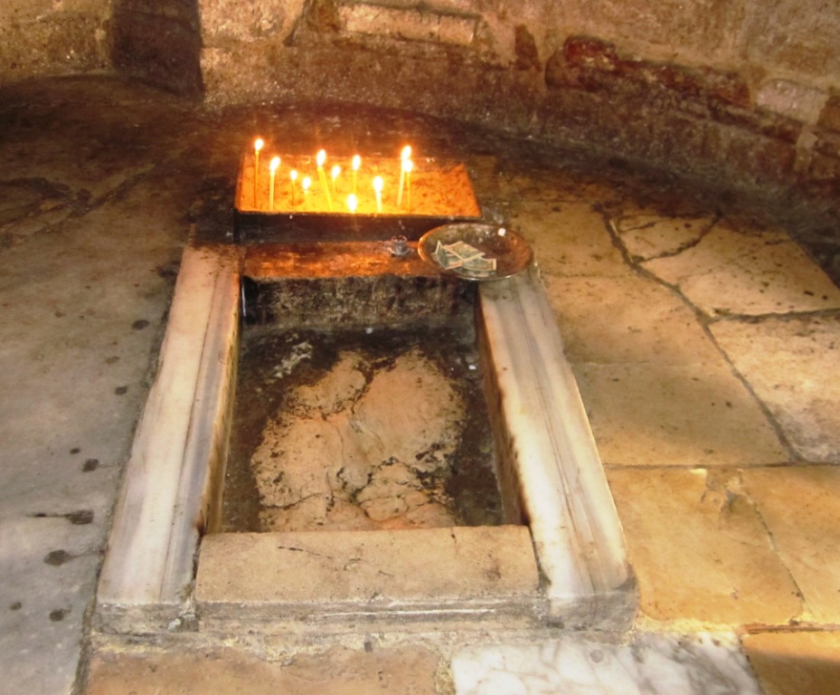 All''interno della quale vi è una pietra sulla quale Gesù poggiava i piedi quando ascese