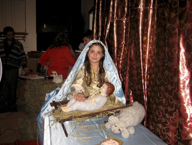 ENTER MARY AND JOSEPH DIM LIGHTS AS SONG IS FINISHING MARY : LINDA JOSEPH : JO JO go to manger in dark NO MUSIC Enter Stephanie with star-goes over Baby Jesus followed by all other angelsturn lights back on Baby is born .RING BELLS Sing Gloria Gloria ring bells