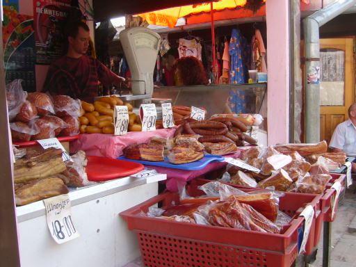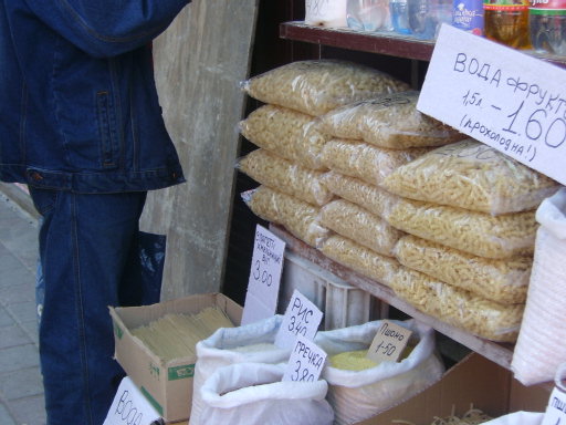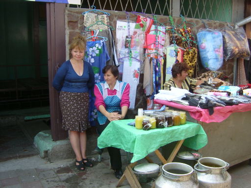 Al di fuori del mercato vero e proprio stazionano delle vecchiette che vendono pochissime cose: qualche pomodoro, qualche cetriolo, qualche oggetto a poco prezzo. Sono persone anziane , che non riescono nemmeno a percepire le misere pensioni, si arrangiano come possono ma sempre con dignità. Nessuno infatti cerca l’elemosina tranne qualche zingaro che però non credo che se la passi troppo bene come da noi: ma mi dicono comunque che gli zingari lavorano anche loro