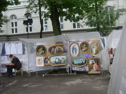 La biancheria esposta in un apposita galleria viene dall’Italia o dalla Germania è ed è più cara che da noi. Meno cara quella che viene dalla Polonia. Più a buon mercato nelle bancarelle la produzione locale: una camicia estiva mi è costata l’quivalente di € 3.