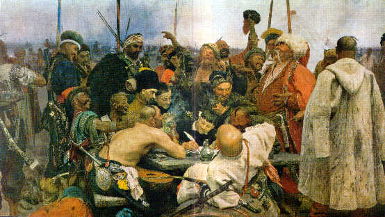 Spesso poi si vede esposta la riproduzione di un quadre (dell'800) che raffigura una risposta insolente e coraggiosa che i cosacchi inviarono al Sultano turco (una specie della nostra disfida di Barletta)